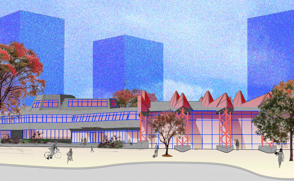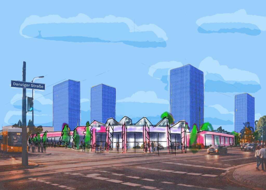 FS: Da wir bereits 2025 zum Thema „Umbau statt Abriss“ eine so genannte Baustelle im Rahmen der Plattform Baustelle Gemeinwohl aufgebaut und eine Stadtwerkstatt durchgeführt haben, gab es unter interessierten Akteuren bereits eine enge fachliche Vernetzung. Diese Akteure haben wir dann zu einem Workshop eingeladen, der am 20. Februar stattfand. Es ist also ein Konzept, das im Dialog entstanden ist – es soll einen Anstoß geben und muss weiter ausgearbeitet werden. Bei dem Workshop wurde das städtebauliche Konzept entwickelt und geeint – die Beteiligten treten nun gemeinsam als „Bündnis SEZ-Quartier neu denken“ auf. Kerngedanke ist es, den Wohnungsbau radikal in die Höhe zu treiben. Durch vier Hochhäuser, die ein markantes Ensemble darstellen, können über 500 Wohnungen entstehen. So kann das SEZ erhalten werden und integrativer sowie identitätsstiftender Teil eines lebendigen Quartiers werden, mit der Signalwirkung, dass Transformation besser als Tabula rasa, Kooperation besser als Konfrontation ist.