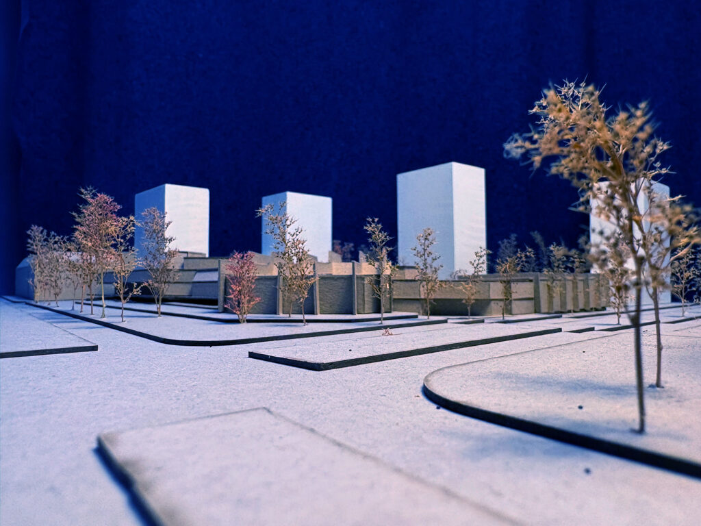 Modellfoto 1 erhöhter Blick Richtung Westen über die Kreuzung